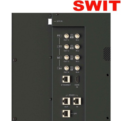 The SWIT monitor BM-U275HDR features a 27" 10-bit LCD display, which allows resolutions up to 3840x2160, even supporting 8K signals. This monitor supports 4K single link input, including 12G-SDI, HDMI2.0 or 12G-SDI via SFP transceiver, and also supports 4x 3G-SDI 4K quad link input, or 4x 12GSDI 8K quad link input.