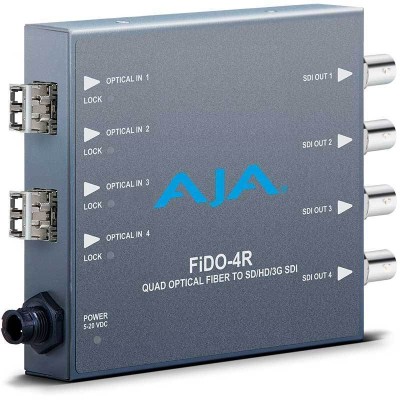 AJA FiDO-4R 4-ch Optical Fiber to 3G-SDI with LC Connector €1,930.00 Quadruple single-mode fiber optic to 3G-SDI converter. LC connectors. allows long cable runs of up to 10km