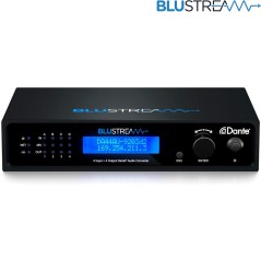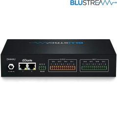 The Blustream DA44AU is a bi-directional analog audio to and from Dante digital audio converter designed for audio professionals seeking to integrate analog audio sources into Dante networks and vice versa. This versatile and compact device offers a robust solution for a wide range of applications, from recording studios and conference rooms to live sound installations and distributed audio systems.The DA44AU features four analog inputs and four analog outputs and allows any non-Dante® audio source, such as mixing consoles, amplifiers, computers and distribution products, to be connected as an audio source within a Dante® network, as well as converting a Dante® signal to analog audio. It supports balanced and unbalanced audio, as well as microphone line level inputs, and provides 48V phantom power. It supports AES67 RTP audio transport.