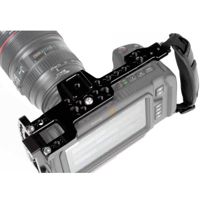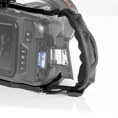 Constructed of lightweight but rugged CNC machined aluminum, it includes a clamp on the left side to prevent your HDMI cable from accidentally disconnecting. Finally, a padded hand strap adds comfort when gripping the right side of the camera.