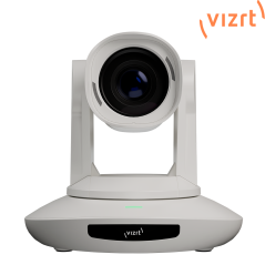 Vizrt PTZ3 Plus UHD PTZ camera in white, combines the simplicity and control of a PTZ camera with the NDI|HX3 protocol. It provides video professionals and AV system integrators with a UHD 4K video PTZ camera for remote education, hospitals, meeting rooms, and TV studios. The PTZ3 Plus UHD features a 30x optical zoom and 2x digital zoom, along with smooth and natural pan and tilt movements. It can deliver high-quality video with virtually no latency while using less bandwidth than previous NDI protocols, and includes SDI and HDMI outputs for local monitoring. Additionally, the PTZ3 Plus UHD offers a mini-XLR audio input with phantom power, and includes an XLR to mini-XLR adapter for use with professional audio equipment.