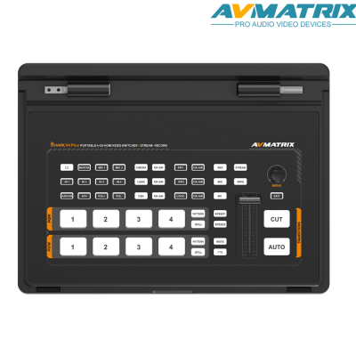 The AVMatrix Shark H4 PLUS is a portable, multifunctional video switcher designed for professionals looking for a comprehensive solution for live productions, streaming, and video recording. Its compact, briefcase-style design incorporates a 10.1-inch Full HD foldable display, making it a versatile and easy-to-transport tool to any event. This all-in-one device lets you manage up to four HDMI video sources, mix audio, add professional transition effects, and stream live or record directly. It's the perfect choice for webcasts, corporate productions, social events, conferences, education, and much more.