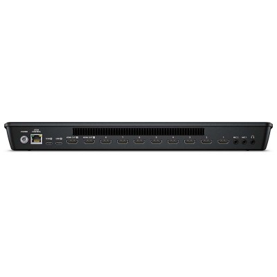 Video mixer rental with 8 HDMI inputs, 2 independent HDMI outputs, 2 USB ports and headphone connection. 4 chrominance keys, 6 DVE channels, 2 multimedia players and multiviewer function up to 16 signals. It allows to record in H.264 format in real time the signal of the mix. It has function buttons for direct activation of recording, streaming and HDMI 1 output configuration.