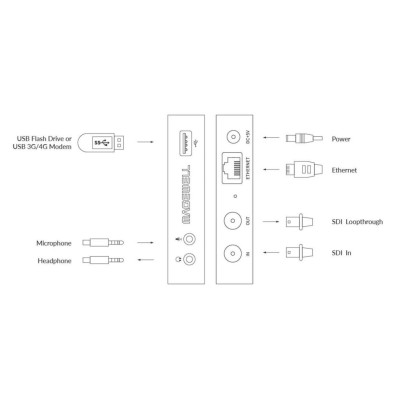 Las conexiones incluyen entrada SDI con salida en bucle (que también admite hasta 2K), un puerto RJ45, un puerto USB para una unidad flash y tomas de micrófono y auriculares. controles integrados para iniciar/detener el streaming y para grabar, y el resto de los controles se incluyen en una WebUI, así como una aplicación complementaria para iOS/Android, que se conecta al Ultra Stream SDI a través de Bluetooth.