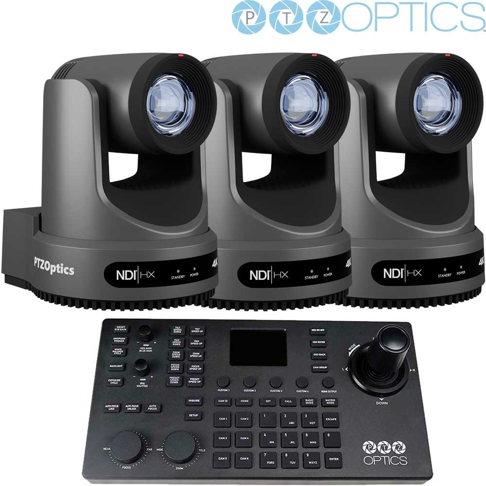 PTZOptics Producer Bundle - Kit de 3 PTZs 4K 20x y controlador SuperJoy