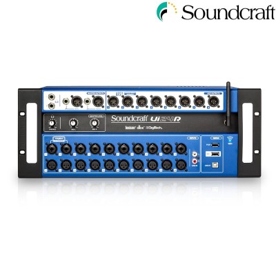 Soundcraft Ui24R es un mezclador y grabador múltipista de tamaño compacto diseñado para ser instalado en rack. Con un total de 24 entradas simultáneas, este dispositivo ofrece una versatíl variedad de opciones para sus necesidades de audio en vivo o grabación. De estas, 10 entradas son combo TRS de 1/4" y XLR, mientras que otras 10 son solo conexiones XLR. Además se incluyen dos entradas de línea RCA y dos entradas digitales.