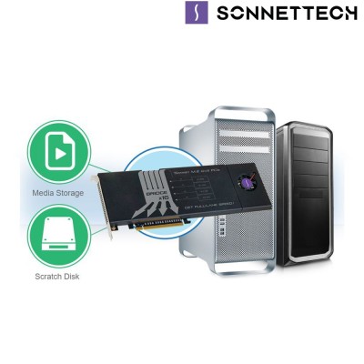 Con la tarjeta Sonnet M.2 4x4 PCIe instalada en tu Mac, PC de sobremesa o servidor Windows o Linux, o sistema de expansión de tarjetas Thunderbolt a PCIe, puedes utilizarla para almacenamiento multimedia de acceso instantáneo o como disco de memoria virtual de alto rendimiento. Los usuarios de Mac pueden incluso instalar macOS en una SSD para crear una unidad de arranque ultra rápido y crear un conjunto RAID 0 con las otras SSD instaladas sin pérdida de rendimiento. Sea cual sea el uso que le des, el rendimiento de esta tarjeta es impresionante.